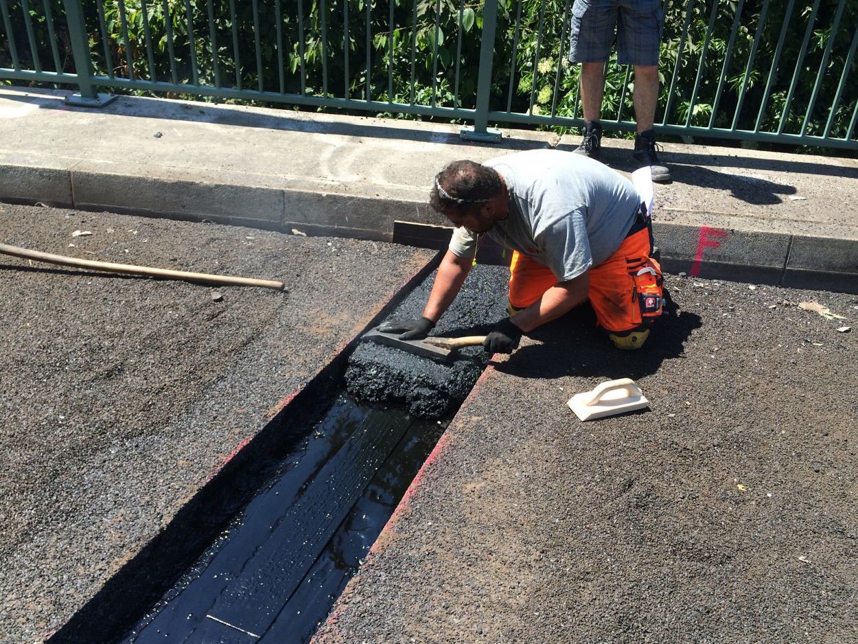 Fahrbahnbeläge auf Brücken müssen enorm viel leisten. Sie müssen die Belastungen des Verkehrs aufnehmen, an das Tragwerk weitergeben und dabei verformungsbeständig, eben und griffig bleiben. Gleichzeitig müssen sie das Brückenbauwerk gegen Oberflächenwasser abdichten, das im Winter die Karbonatisierung förderndes oder korrosionsförderndes Tausalz enthält. Für die Dauerhaftigkeit einer Brücke sind hierbei die Wahl des richtigen Abdichtungssystems und des richtigen Fugenfüllstoffs zur Ausbildung der Fugen von entscheidender Bedeutung.