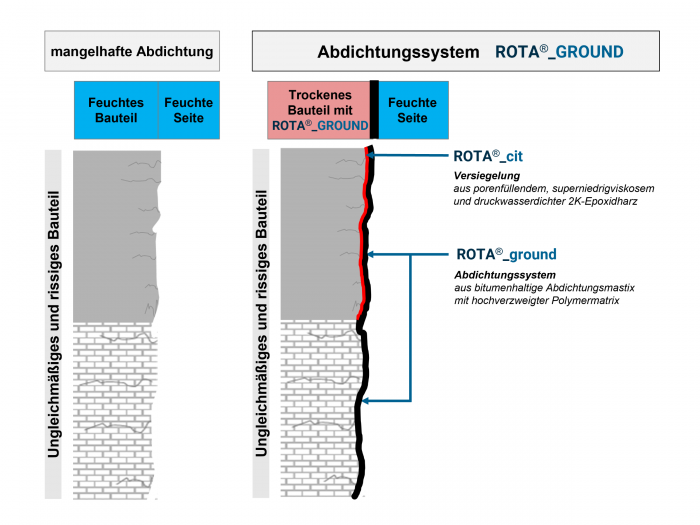 Als Spezialist für Bauwerksabdichtungen hat die ROTAERNUM GmbH die traditionell angewendete „schwarze Wanne“ völlig neu definiert. Mit der Produktline ROTA®_GROUND können erdberührte Bauteile, bspw. im Rahmen einer Kellerabdichtung, deutlich schneller, einfacher und nachhaltiger abgedichtet werden.